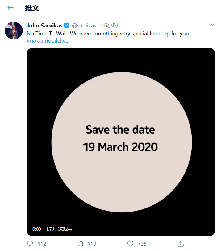 和很多公司一样,HMD Global也计划在今年的MWC大会上宣布新产品。不过受到新冠病毒疫情的影响,MWC 2020已经取消。为此HMD首席产品官Juho Sarvikas在Twitter上发布消息,表示公司将于3月19日在伦敦举行活动。
