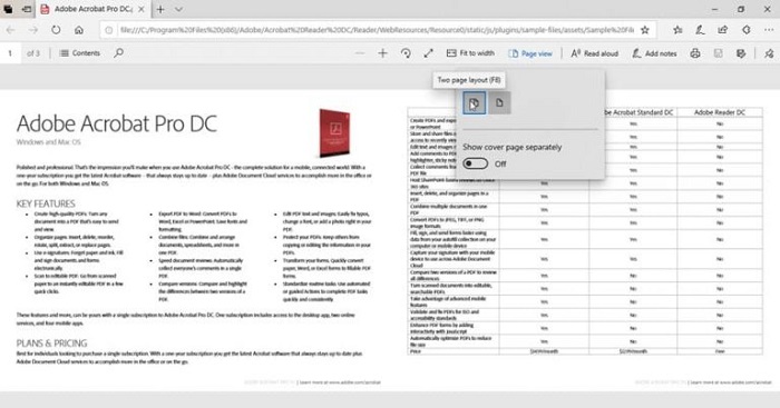 经典版 Edge 浏览器中的 PDF 两页视图