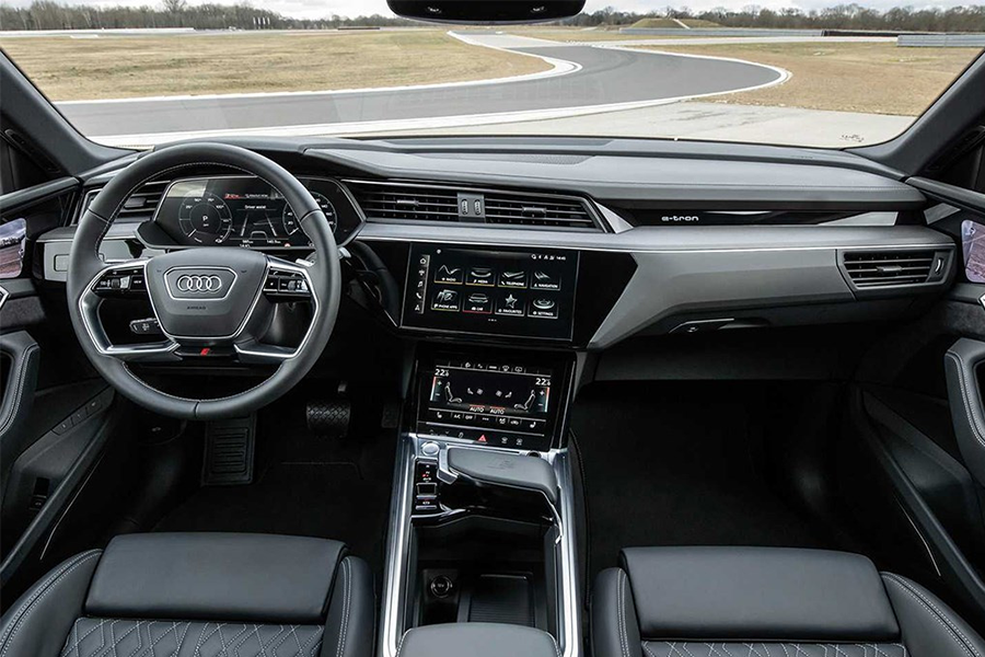 内饰方面,奥迪e-tron S Sportback延续了此前科技感十足的整体布局,配备了12.3英寸数字仪表盘、12.1英寸中控显示屏以及8.6英寸的空调控制面板。同时,该车所配备的运动座椅的材质由Alcantara和皮革组成,并印有菱形纹路,兼顾了运动感与豪华感。