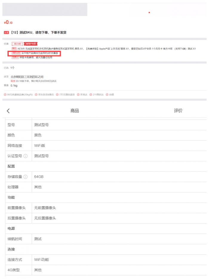 3月4日消息,近日京东苹果自营店上线新品链接,链接信息显示为测试SKU,勿下单。测试链接下指向的产品规格页面有“网络连接:WiFi版”、“存储容量:64GB”等信息。另外再结合其中一个带有“买平板产品满99元返耳机9折优惠券”的促销信息,很显然,此番上架的新品测试链接如无意外,应该是苹果的平板产品。