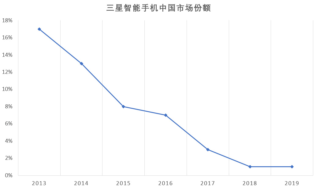 2019年9月,三星关闭了再中国大陆的最后一家工厂(惠州工厂),并裁减3000人,全面停止手机产品在中国的生产。与此同时,三星智能手机亦正在丢掉庞大的中国智能手机消费市场,2019年其在中国市场份额已跌至1%。