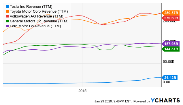 特别是对于那些相信世界汽车年销售量已经达到“峰值”的人而言,他们不得不期望特斯拉未来的收入增长中的很大一部分是“抢夺”主要竞争对手的其它车企的市场份额。其中包括日本的丰田、德国的大众、以及美国的通用和福特。目前这四家公司合计的年收入超过 8000 亿美元,而特斯拉的 2020 年收入估计约为 300 亿美元。