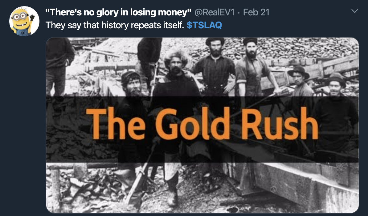 网友讽刺特斯拉引发了新一轮的“淘金热” | Twitter @RealEV1