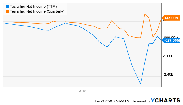 特斯拉过去的盈利情况 | YCharts 数据