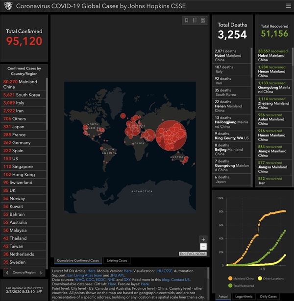 约翰·霍普金斯大学推出了一款自制的全球疫情Web APP,方便用户及时获知最新数据。这款Web App名为Coronavirus COVID-19 Global Cases by Johns Hopkins CSSE,数据来源为WHO、中国CDC和美国CDC,数据类别包括全球各国确诊人数、死亡人数、治愈人数,以及各类数据图和柱状图,其中的全球疫情可视化地图更是直观易用。