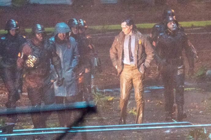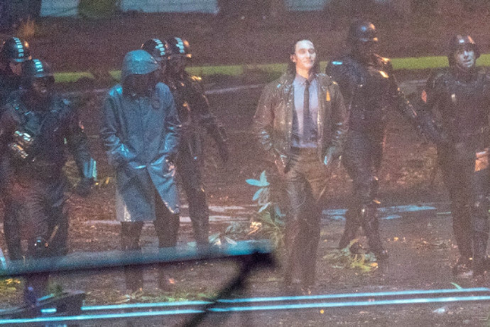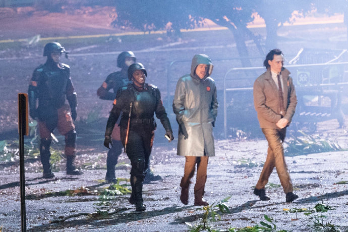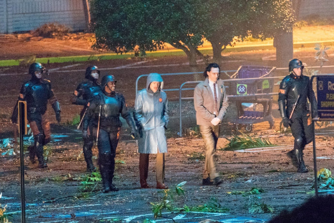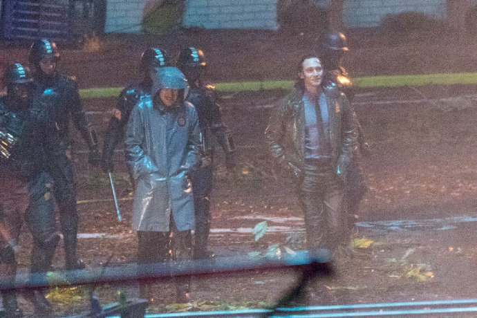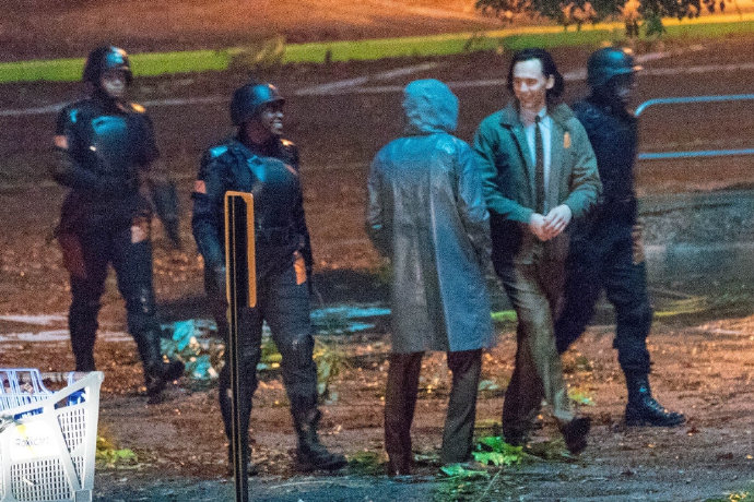 迪士尼+限定剧《洛基》片场照曝光,这场戏中抖森饰演的洛基应该是被时间变异管理局抓了。索菲亚· 迪·马蒂诺饰演角色疑似“女洛基”也现身片场(图8、9)。剧集目前仍在拍摄中,计划于2021年春季上线迪士尼+。
