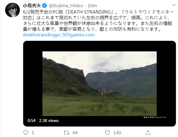 小岛秀夫新作《死亡搁浅》的PC版本即将于6月3日同时在Steam与Epic平台上发售了。今天,小岛再次展示了一段《死亡搁浅》PC版超宽屏幕演示。小岛秀夫表示,超宽屏幕的新功能拓宽了玩家的水平视角,可以实现极大的宽高比。