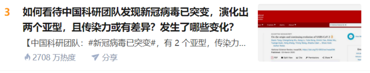 尽管如此,这一消息还是将大家的心揪起来了。病毒突变了,会不会让疫情更加严重?一时间,知乎、微博上关于新冠病毒突变的讨论甚嚣尘上。