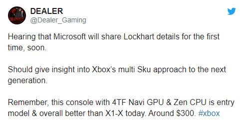 除了已经揭晓差不多的Xbox Series X主机,微软被曝还在准备“Xbox Series S”,内部代号“Lockhart”。国外爆料人透露,微软很快将首次介绍“Lockhart”。据悉,“Lockhart”采用Zen+Navi架构,GPU浮点性能4TFLOPS。虽然这个数字比Xbox One X低,但得益于RDNA架构,实际游戏性能却在X1X之上。
