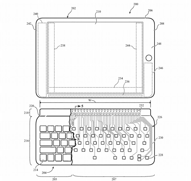 在周四由美国专利商标局发布的名为“远程电容接口”的专利申请中,苹果公司建议键盘附件可以连接到显示屏本身进行操作。苹果的解决方案是创建一个与显示屏接触的配件,作为其iPad皮套机制的一部分。申请书中的一项提议提出了一种滑动夹具,该夹具可以使iPad显示器的边缘与触点轻轻靠近。