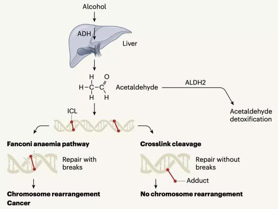 对于乙醛脱氢酶2基因失活的人而言,身体的第二层自我保护机制就是修复乙醛导致的DNA损伤。