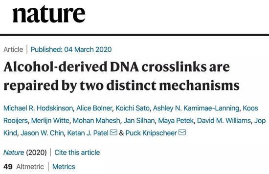 今天,荷兰皇家科学院Hubrecht研究所和英国MRC分子生物学实验室的科学家,在顶级期刊《自然》上发表的研究成果[1],对有饮酒习惯的人而言是个好消息。他们发现了一个全新的DNA修复机制,可以安全地修复酒精代谢物乙醛导致的DNA损伤。