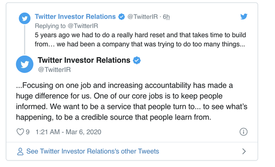 但他今天还是通过Twitter的投资者关系帐号发了一条推文,从多方面对自己的领导能力和公司发展进行了辩护。