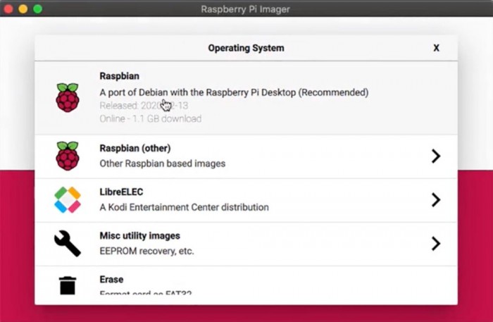 在下载页面下载该工具并安装之后,用户可以选择想要写入的镜像以及想要安装的设备。此外该工具还提供了包括Raspbian的可用镜像、以及其他基于Raspbian的镜像和LibreElec。如果您决定将其用于存储目的,则还可以使用该工具内提供的其他各种实用工具和擦除设备的选项。
