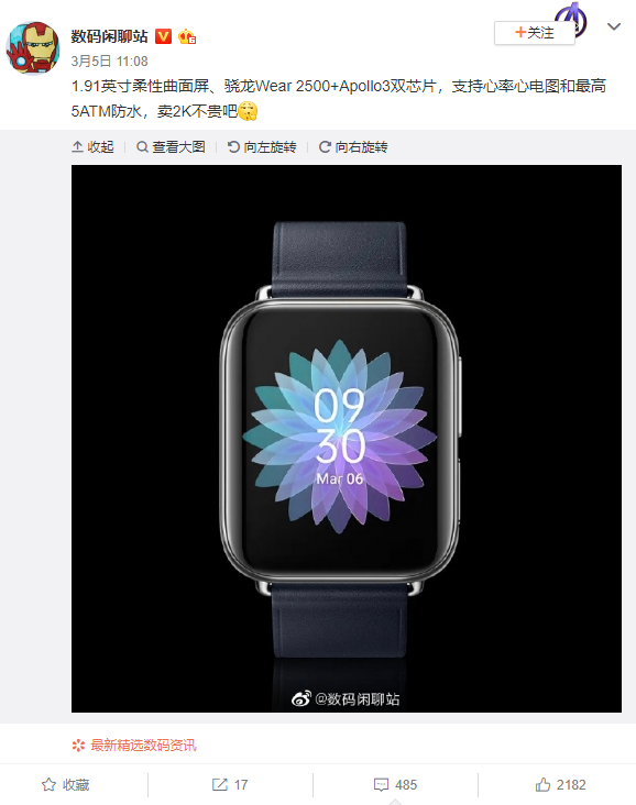 不过 OPPO 首款智能手表的定位显然更高一些(面向中高端市场),预计售价在 2000 RMB 左右。