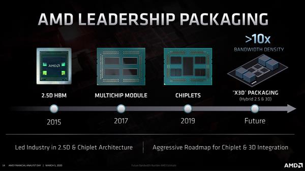 除了CPU工艺,AMD在封装工艺上也会加速,尽管他们在MCM多模封装、Chiplets小芯片设计上领先了,但是在2.5D/3D封装上面,AMD实际上是要比友商的EMIB、Foveros封装是要落后的。