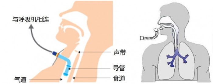 医生会从患者喉部声门处插入导管,或切开气管让呼吸机的管子直通患者的气道。这些都属于创伤性操作,但对危重病人意义重大。由于不再通过口鼻部给气,也就避开了消化道,降低了呕吐物等被不小心吸入气道的风险,还有利于及时吸出气管内的分泌物,保持呼吸道通畅。