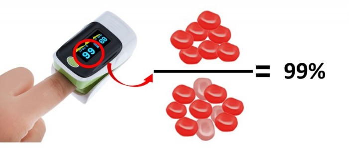另一个是血中氧饱和度降低。“血氧饱和度”是判断患者缺氧程度的常用指标,通俗讲,就是装满氧气的红细胞占全部红细胞的百分比。