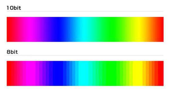 而10bit拥有2的10次方的灰度值、每个通道就是1024个灰度,三个相乘,我们会得到超过10亿种色彩,是8bit的64倍,而12bit更不用说,拥有超过600亿个色彩。简单来说,就是拥有更加顺滑的色彩过度。