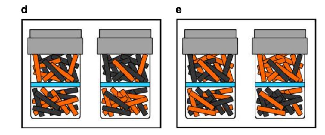 结果,啄羊鹦鹉更倾向于选择隔板上方黑夹子比例更高的罐子(即上图中,d组右边的罐子以及e组左边的罐子)。这说明,它们在推断概率时懂得隔板下方的夹子并不在统计范围之内。跟人类相似,啄羊鹦鹉在进行统计推断的时候,会综合考虑物理阻隔。
