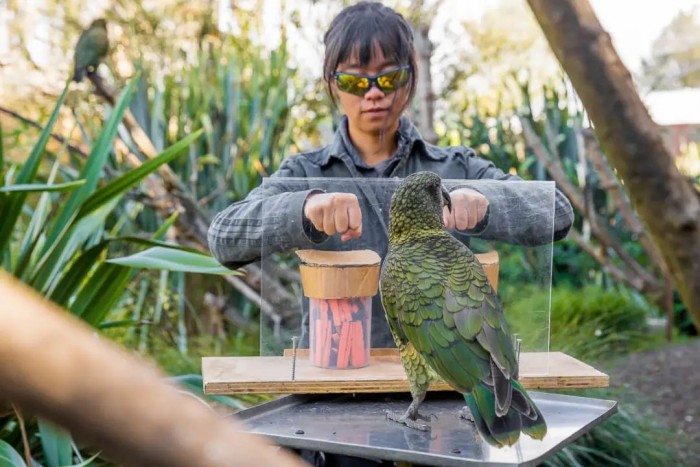 啄羊鹦鹉生活在新西兰环境严酷的高山上,平日喜欢咬咬登山者的背包和鞋子,偶尔也翻翻垃圾桶,或者合作撬开门窗找食物,甚至把登山客锁在山上的厕所。凭借特有的好奇心和超高智商,啄羊鹦鹉在新西兰家喻户晓。不少科学研究都证实了啄羊鹦鹉的聪明伶俐——它们不仅会使用工具,还能顺利通过许多智力游戏测试。