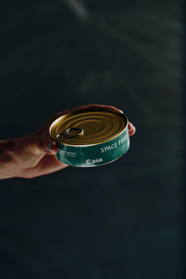焦点小组聚集在一间装有荧光灯的会议室里,会议室里点缀着各种美食照片,像什么棒棒糖、辣鸡翅和萨拉米香肠意面等等。桌子上,科布伦茨摆放了一些小塑料杯,里边是M&M巧克力豆、冻干奶酪还有果珍。这些既可以作为工作间隙的零食,又可以作为设计灵感。内斯波利则带着他自己的道具出现在会议室——NASA的铝箔餐包,从俄罗斯补给线和欧洲航天局顺来的罐头,其中一个罐头上简单地贴着“太空食物”的标签;还有一个半透明的塑料包装,里边的东西看上去像极了发黄的耳塞,实则是脱水土豆泥。“没有谁会为了食物去太空,”科布伦茨说。