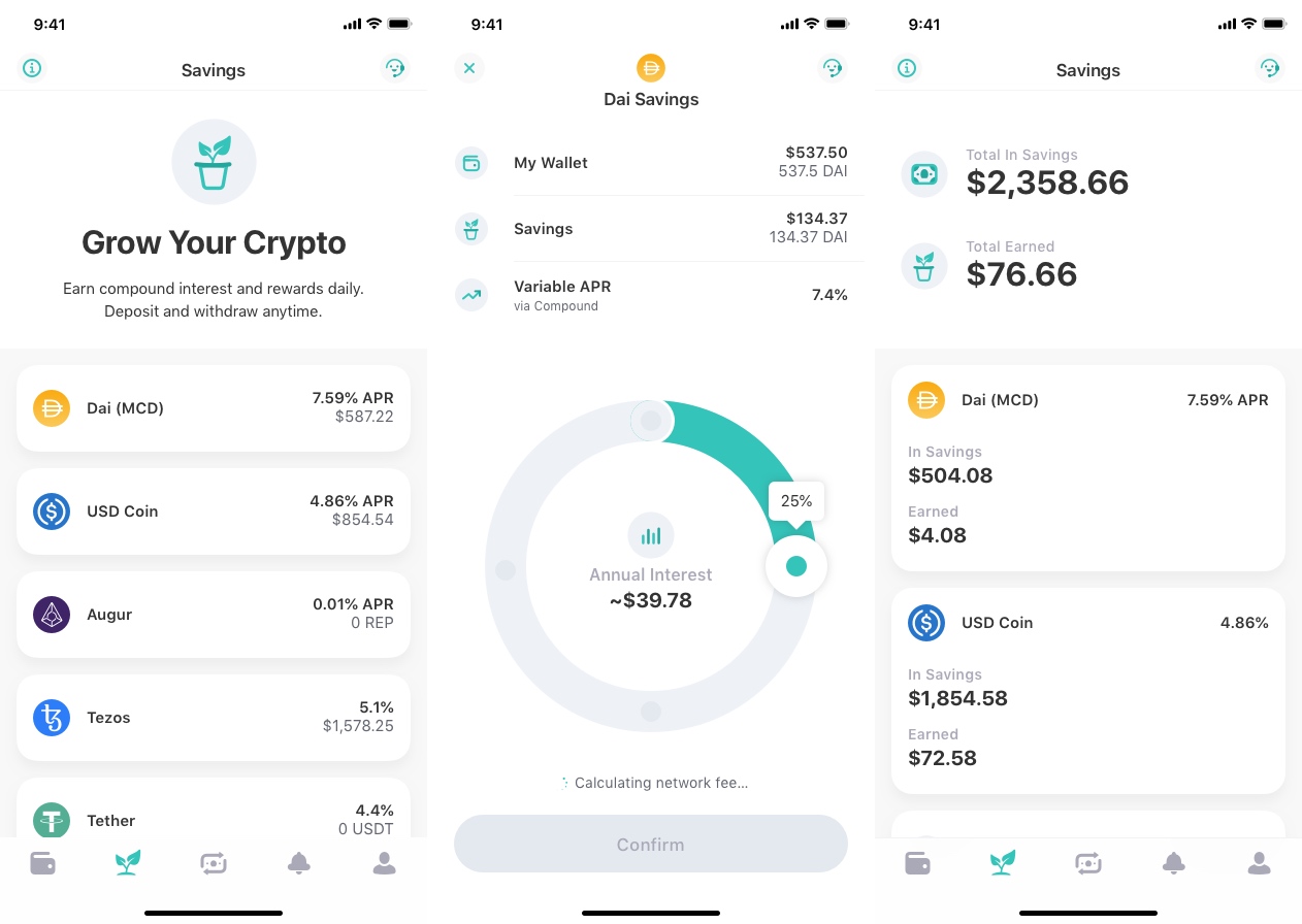 当ZenGo钱包中有加密资产时,现在可以打开“储蓄”选项卡,选择一种资产(例如Dai),然后选择要保留的资产比例。