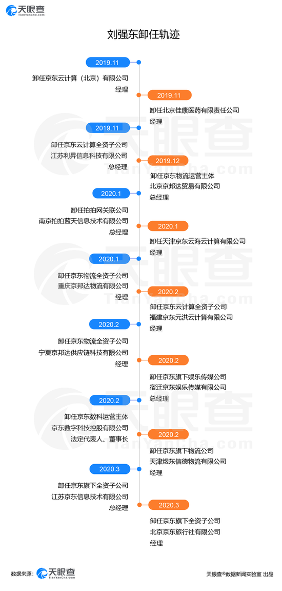 值得注意的是,天眼查数据显示,事实上,这已是刘强东2020年以来卸任的第10家公司。近日,刘强东还卸任了京东数科运营主体京东数字科技控股有限公司的法定代表人和董事长,此外还包括京东物流全资子公司、京东云计算全资子公司等运营主体的高管职位。