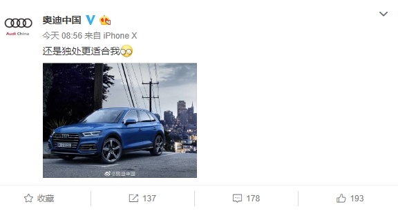 多次被抛弃的奥迪,再一次遭受打击。@奥迪中国最终还是忍不住发表评论:“还是独处更适合我。”对此有网友有表示,电灯泡灯厂实锤了!