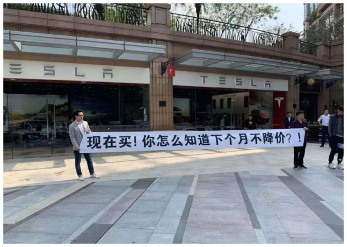 如此“反应迅速”的价格变动,让老车主们猝不及防,“提车两个月,血亏30万”、“想为生活添堵么?买特斯拉”等条幅拉满直营店,让人愤怒,却又没有办法。价格的涨涨跌跌跌跌也反映了特斯拉的一个特点,一方面通过灵活降价刺激销量,同时也坚决不能让自己吃亏:“关税降了我也不多挣你的,但是关税涨了我也要涨价,成本涨了我还要涨价。”