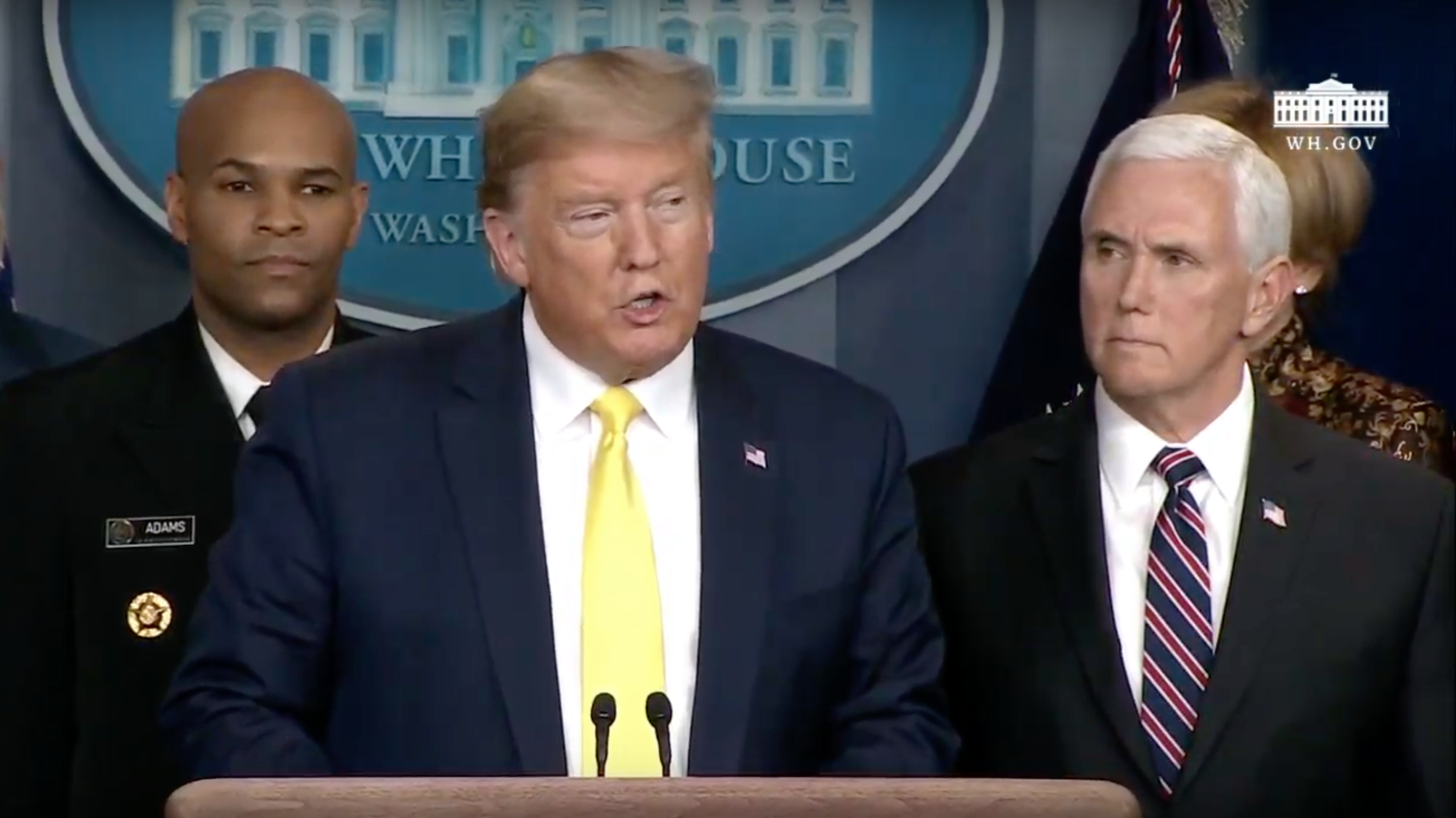 随后,副总统迈克·彭斯概述了美国政府应对新冠病毒蔓延的最新举措,同时还强调,大多数美国人感染该种疾病的风险仍非常低。