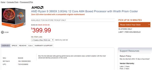 现在microcenter更进一步,锐龙9 3900X处理器的价格首次杀进400美元内,只要399.99美元,折合人民币2772元。