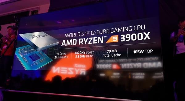 锐龙9 3900X是去年发布的锐龙3000处理器中的次旗舰,12核24线程,3.8GHz基础频率,4.6GHz睿频频率,6MB L2缓存,64MB L3缓存,总缓存70MB,TDP 105W。