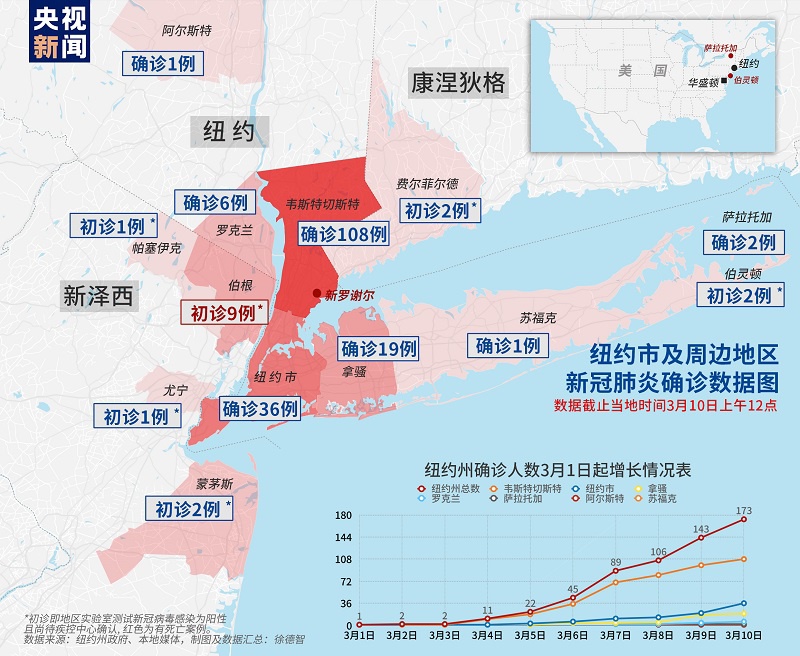 此外,纽约市感染人数在一夜之间翻倍,从18例增长到了36例。