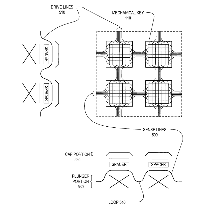 依照专利的描述,用户通过将手指在键盘表面滑动来控制光标的移动,就如同触控板一样。这些具备触控功能的按键会提供与触控板完全一致的功能,让用户实现指点操作、选择菜单项以及在屏幕上完成缩放与滚动操作,所有这一切均无需离开键盘。