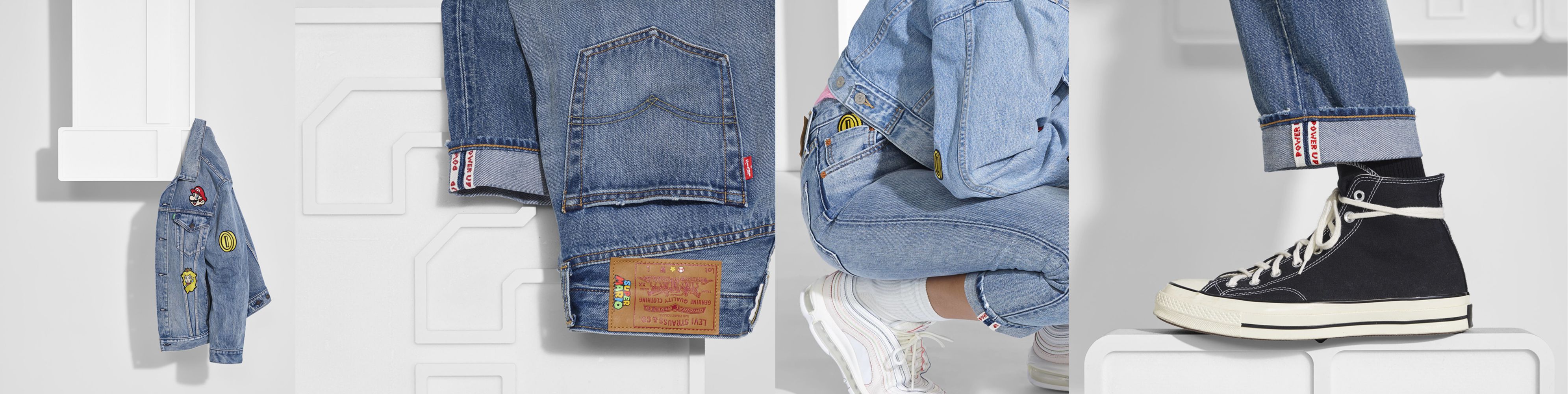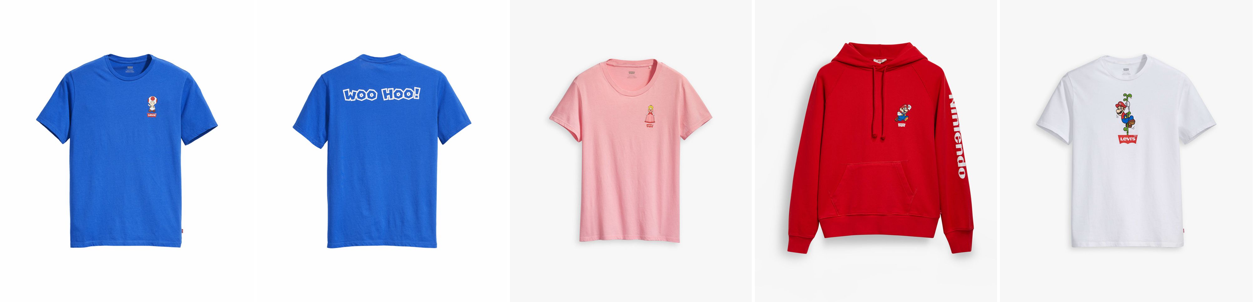 李维斯(Levi's)官方推特帐号发布新推文,展示了多款和任天堂联动的马里奥主题服装,包括印满马里奥角色卡通图案的衬衫,以及一条牛仔短裤。