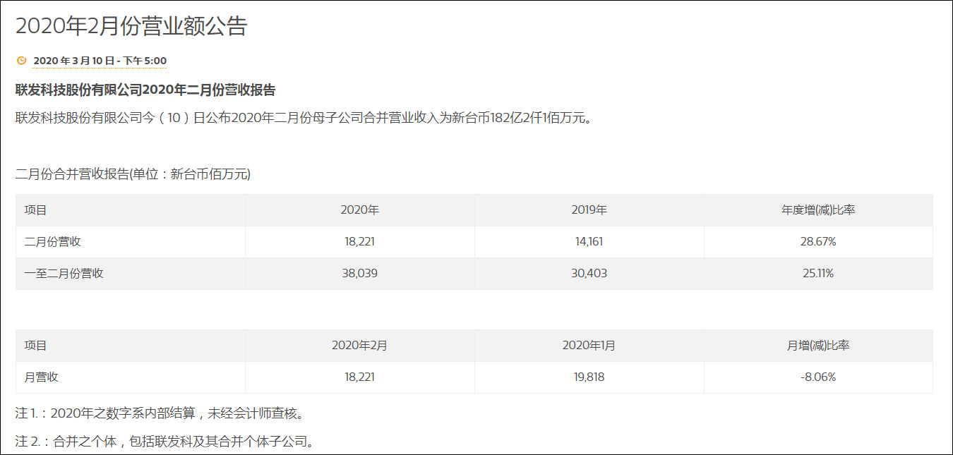 3月10日,台湾手机芯片厂商联发科公布2月业绩报告:营收182.21亿元新台币(约合人民币42.4亿元),环比减少8.06%,创下近1年新低,不过同比增长28.67%。台媒“中央社”10日分析称,除淡季效应外,新冠肺炎疫情造成的需求不确定, 是造成联发科2月业绩进一步滑落的原因。