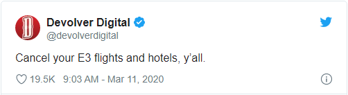 在陆续有厂商宣布退出,以及官方态度经历了多次摇摆之后,今年的 E3 游戏展可能真的要说“GG”了。Ars Technica 和彭博社报道称,这场年度游戏贸易盛会将很快宣布取消,最早可能于今日晚些时候发布公告。早些时候,Devolver Digital 已经迫不及待地在 Twitter 上发布了预告,建议大家取消前往参加 E3 的航班和酒店。
