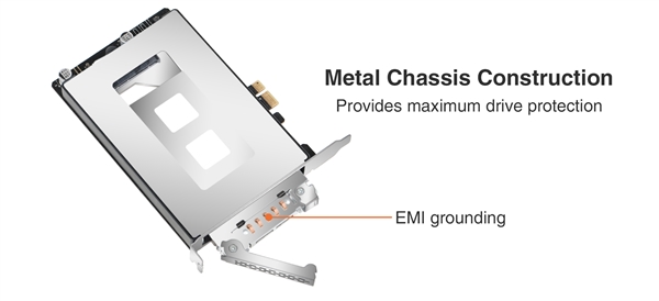 因为是扩展硬盘,ToughArmor MB839SP-B采用了全金属设计,由大面积通风孔,号称抗震、方便散热等。