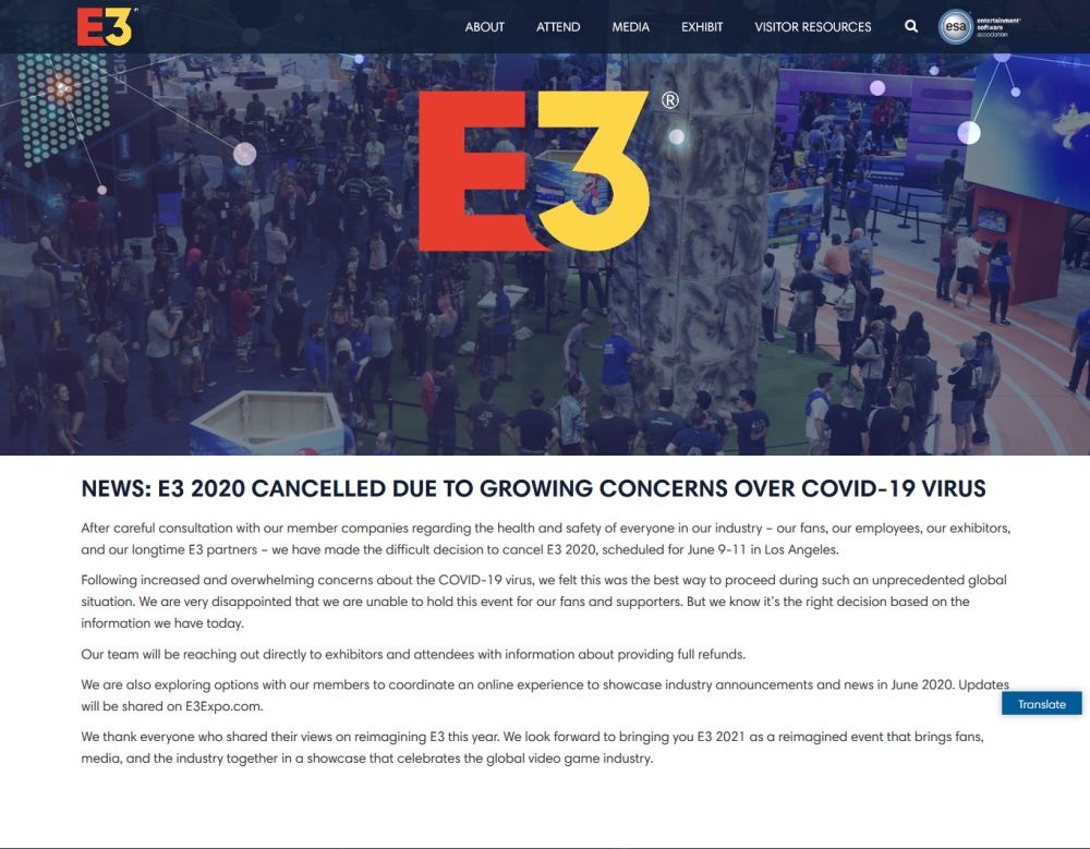 ESA表示,他们的团队随后会跟参展商等联系,提供有关全额退款的消息。实体展会取消之后,E3官方表示还会跟合作伙伴探索新的展示方式,包括在线发布等等。