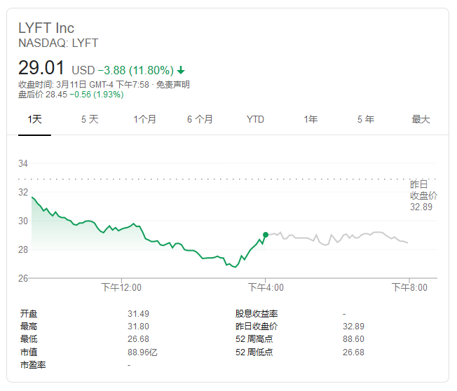据外媒报道,打车服务公司Uber和Lyft的股价周三出现大跌,原因是投资者担心病毒疫情将人们锁在家中,影响到打车需求。Uber的股价下跌了9.4%。Lyft的股价则暴跌了12%,创下有史以来最大跌幅。
