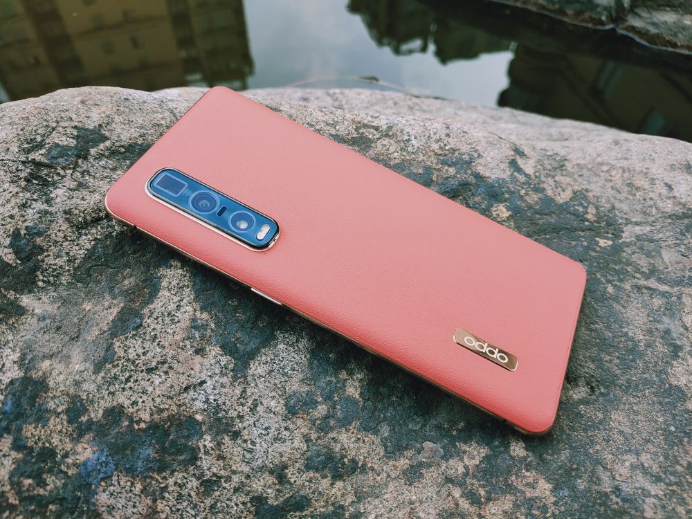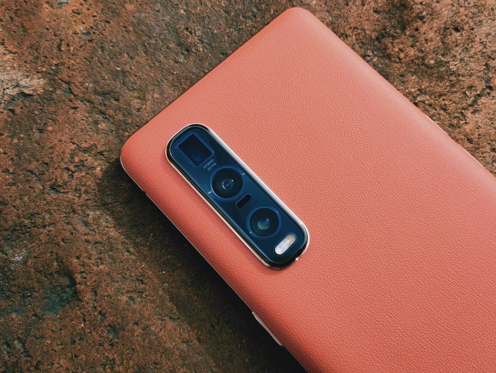机身背面的茶橘色皮革采用特殊的超纤环保皮材质,细腻亲肤而且经久耐用。背面摸上去的感觉非常舒服,而且给人手机非常轻薄的感觉。Find X2 Pro在版型上延续简约的风格,后背竖排三摄放置于背板左上角,正下方是竖排的OPPO Logo。Logo字体与机身颜色一样为橙色,整个背板只出现黑、橙两种色调。
