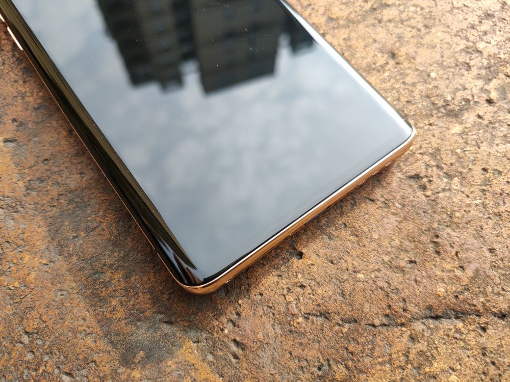 Find X2 Pro的屏幕很精致,拥有OPPO有史以来最窄的下巴:下边框2.98mm,上边框仅2.2mm。而且拥有3D曲面屏中最小的前置摄像头,直径仅3.84mm,位于左上角,横屏打游戏时视野不受影响。加上67.8°曲面的设计及小面积单打孔,使得屏占比相当出色。