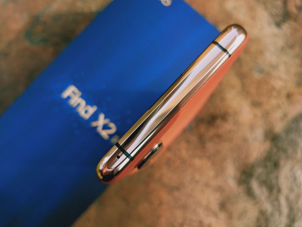 OPPO Find X2 Pro的数据接口依旧采用Type-C标准,支持高达65W的SuperVOOC 2.0超级闪充,卡槽放置在机身底部,形状设计十分别致,因此可以隐藏在同样是家族式设计的“月牙弯”凹槽当中,使得机身左右两边的中框部分更光滑过渡,具有一体感。