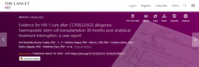 近日,来自伦敦大学学院和牛津大学的研究人员在美国西雅图举行的“逆转录病毒和机会感染”会议(CROI)上对这一病例进行了汇报,并将研究结果发表于2019年3月5日在《自然》杂志上。相关的病例报告发表在3月10日的《柳叶刀·艾滋病病毒》(Lancet HIV)杂志上。