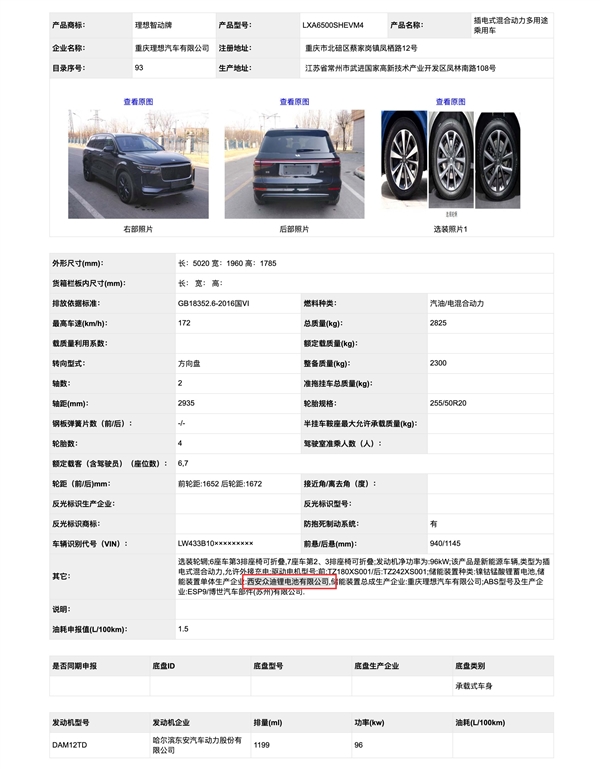 日前,我们在最新一批工信部新车申报目录中,发现4款理想ONE的新车申报公告。其中三款车型采用来自宁德时代的三元锂电池组,一款车型采用来自比亚迪的镍钴锰酸三元锂电池。