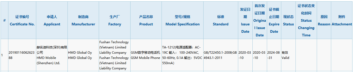 今年2月,型号为TA-1212的诺基亚新机通过了工信部的认证。从公布的定妆照和规格表可以确认是一款功能手机,在手机两侧有红色条纹,看起来非常像是Nokia Xpress Music家族的最新成员。而近日型号TA-1212再次现身3C认证网站,显示将会提供标准充电(5VDC, 550mA),对于一款功能手机来说并没有什么好奇怪的。
