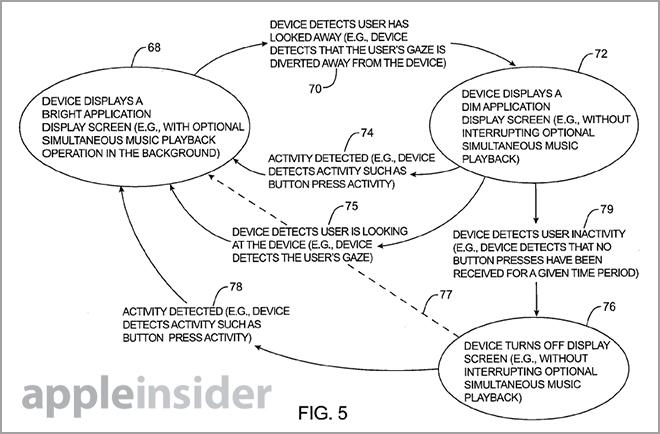 苹果公司在周四由美国专利商标局发布的名为“注视显示屏加密”的专利申请中,提出了一种操纵显示屏内容的方法,以使只有活动用户才能确切知道所显示的内容,而利用欺骗手段欺骗周围观众。该系统以Apple为中心,在设备屏幕上检测用户的视线。这样,设备将准确知道显示屏上需要真实显示且无遮挡等等部分。在用户未积极查看的其余显示部分中,系统仍显示图像,但其中包含无用且难以理解的信息,观察者无法理解。