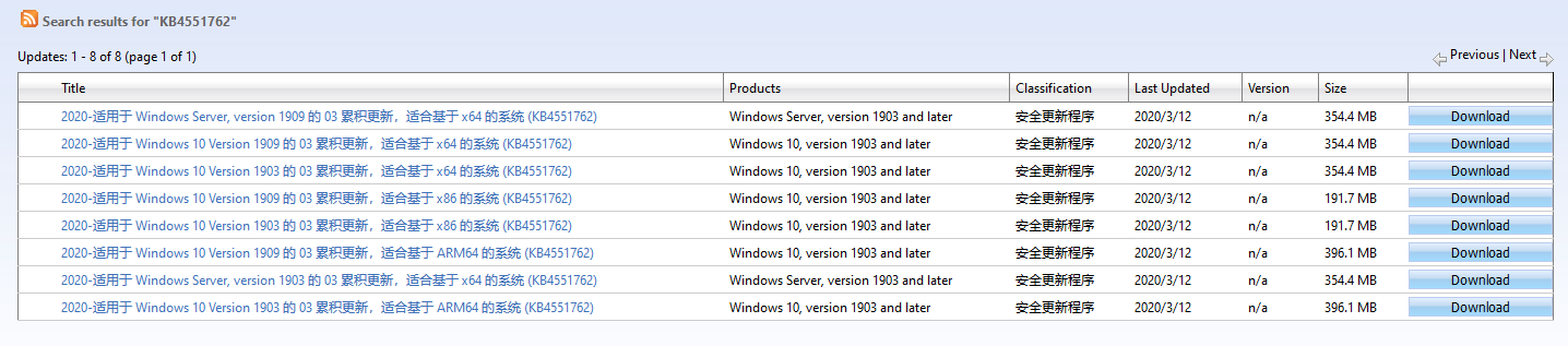 手动下载地址:https://www.catalog.update.microsoft.com/Search.aspx?q=KB4551762