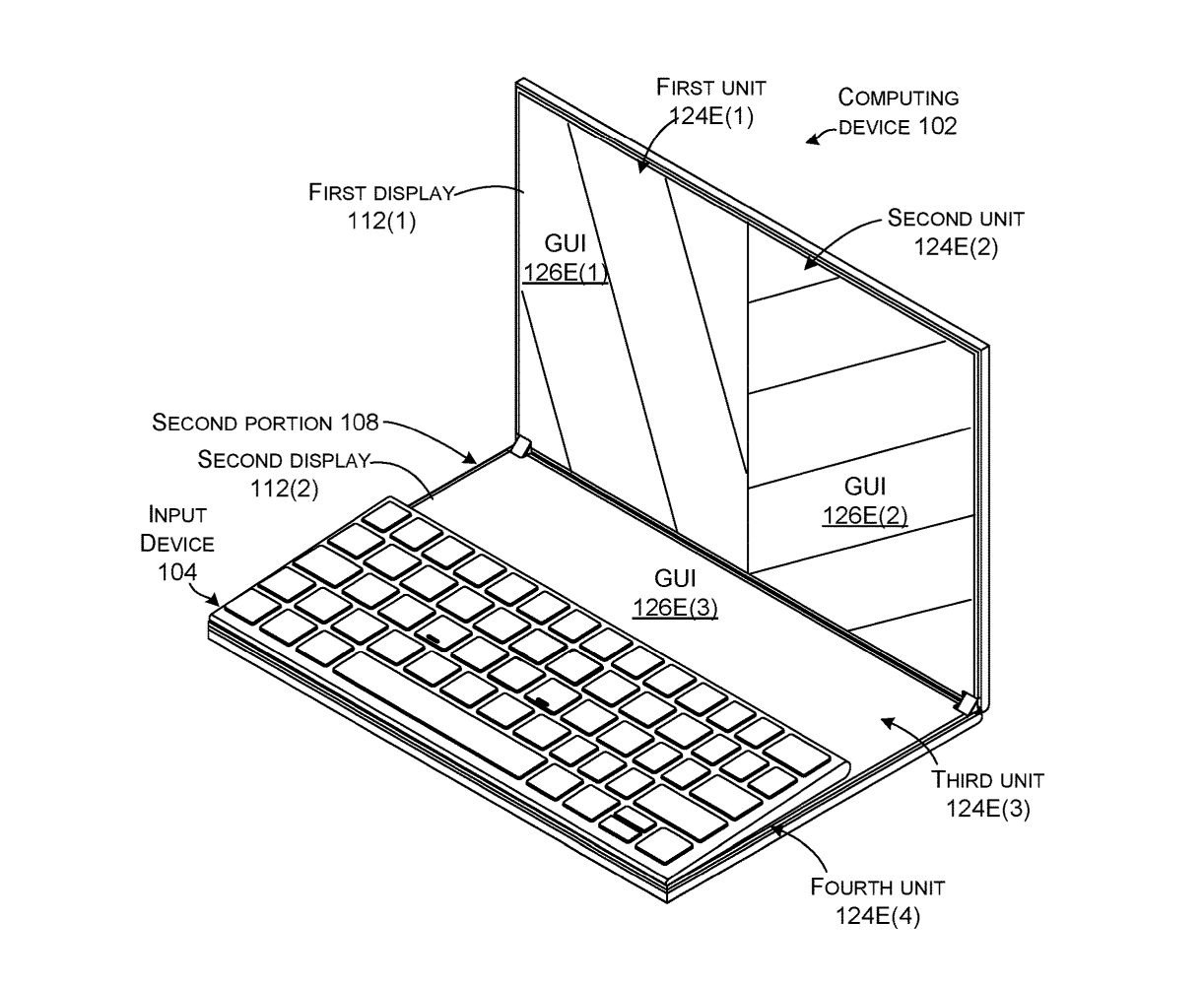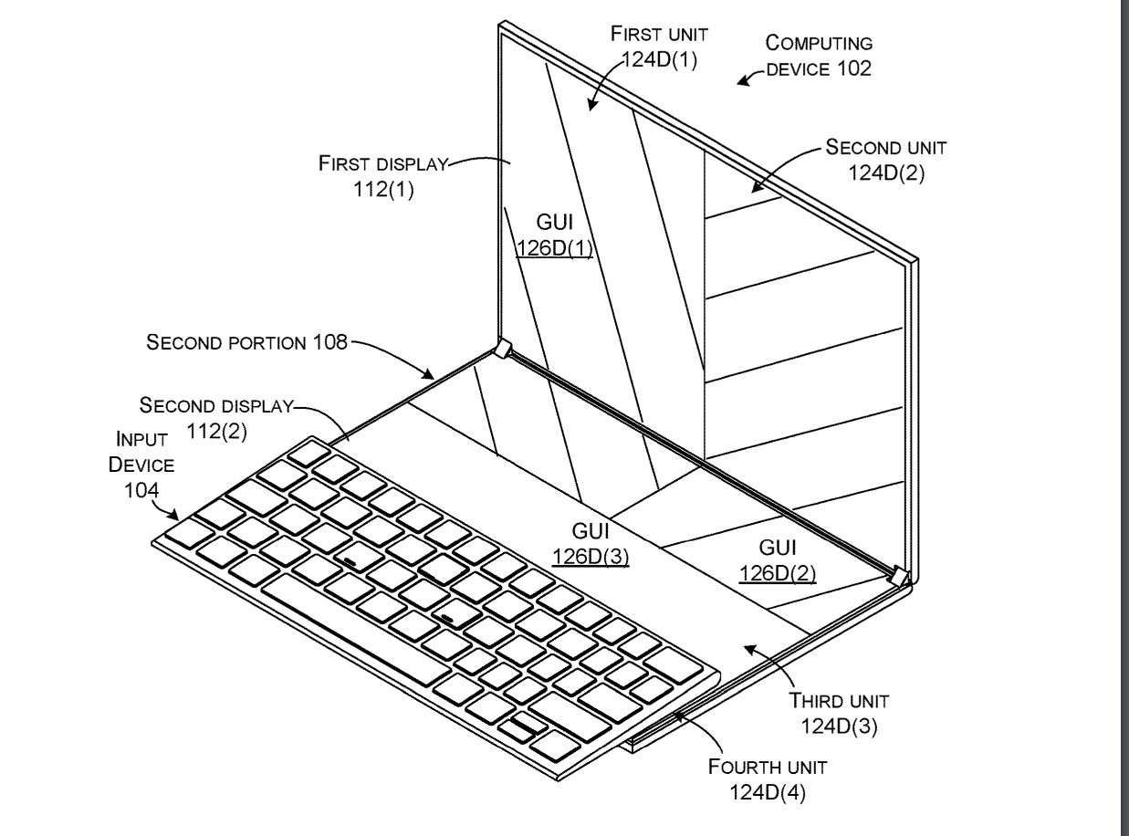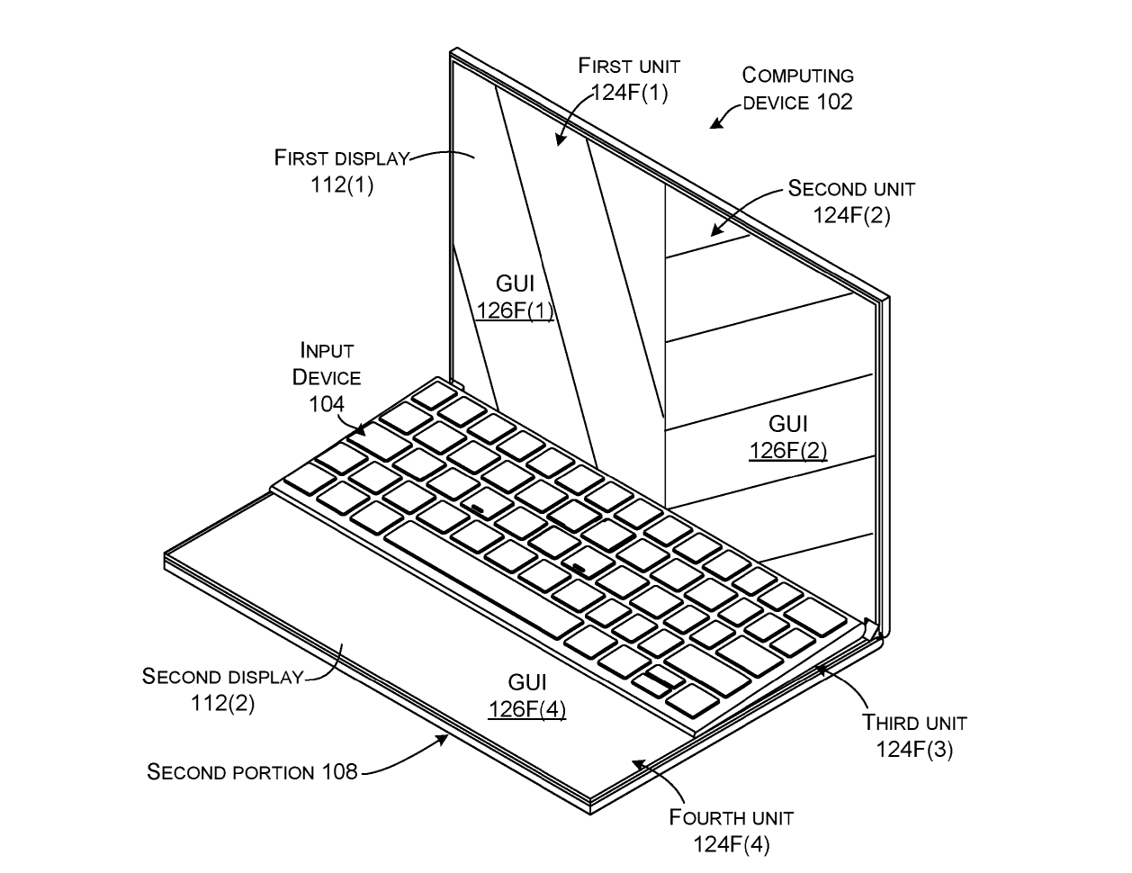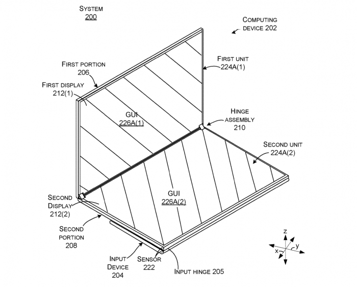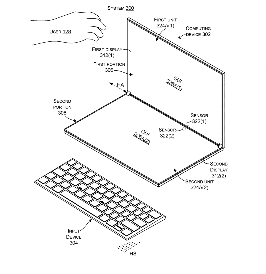 今天外媒Windows Lastest发现了一款Surface Neo的技术专利。在专利概述中,微软计划让两块屏幕执行不同的功能。例如一块屏幕用于显示GUI,而另一块屏幕则显示输入区域。如果屏幕的一部分被用户遮挡,那么Surface Neo就会根据遮挡物重新计算屏幕的可显示区域,重新调整应用的显示位置。